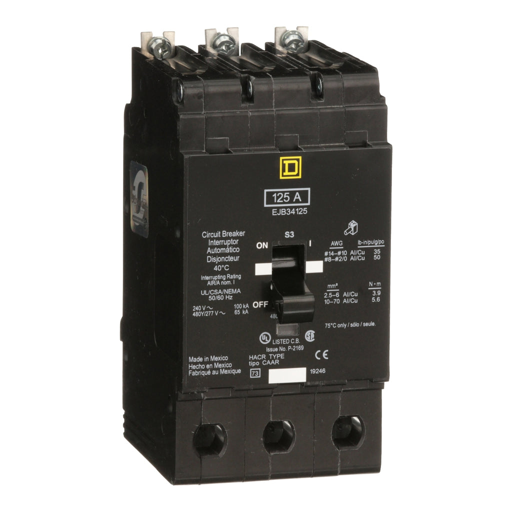 EJB34125 - Schneider Electric - Bolt-On 125 Amp 3 Pole 480 Volt Square D Molded Case Circuit Breaker