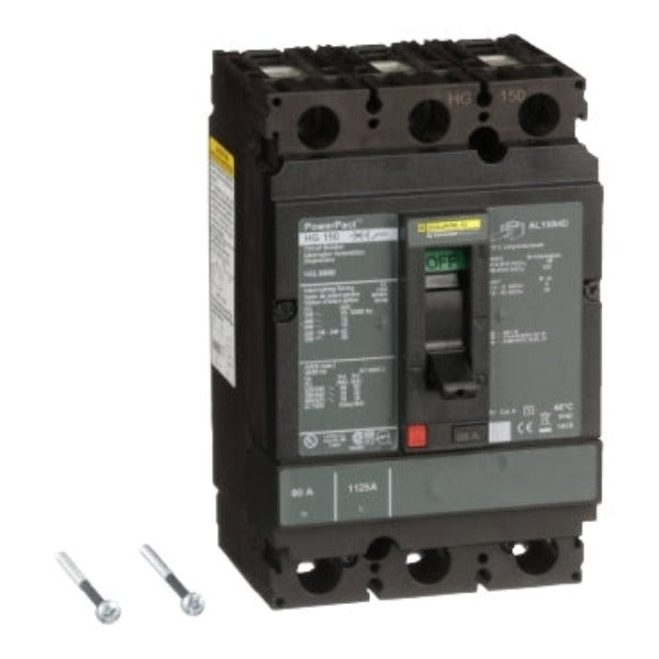 HGL36080 - Schneider Electric - Feed-Thru 80 Amp 3 Pole 600 Volt Square D Molded Case Circuit Breaker