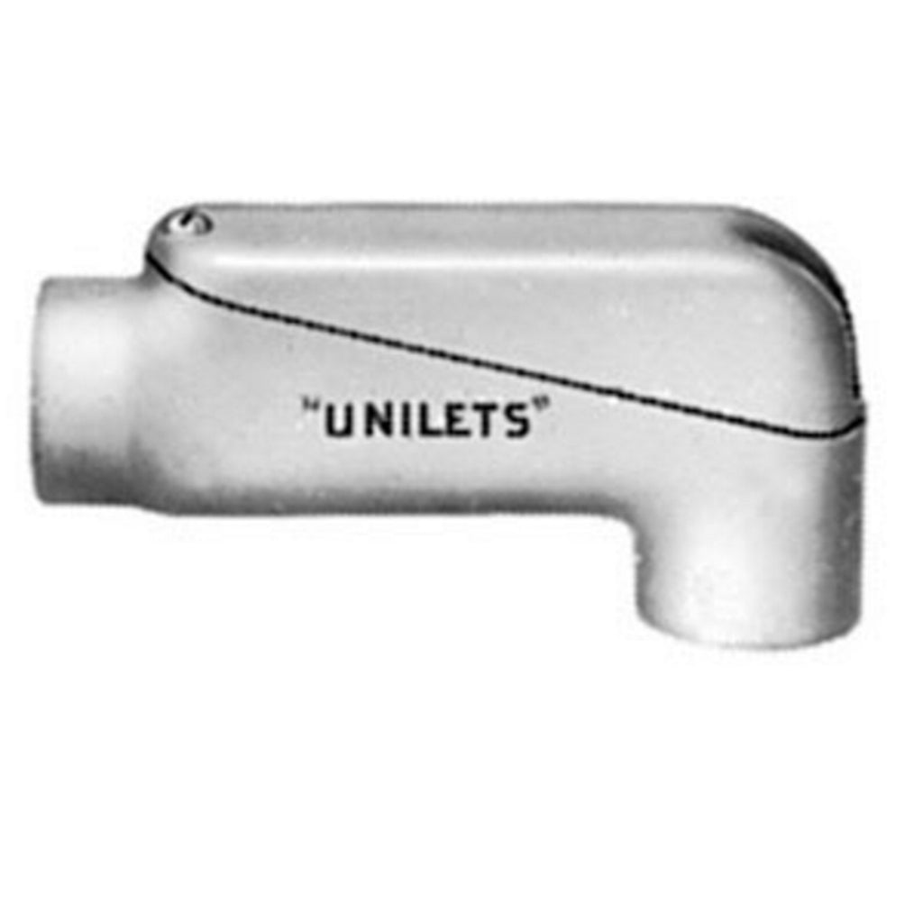 Malleable iron LBD conduit body for 1" conduit, designed for back-mounted configurations. Offers a low-profile solution with internal access. Common in tight or angled conduit runs. Provides tough, reliable junction access.